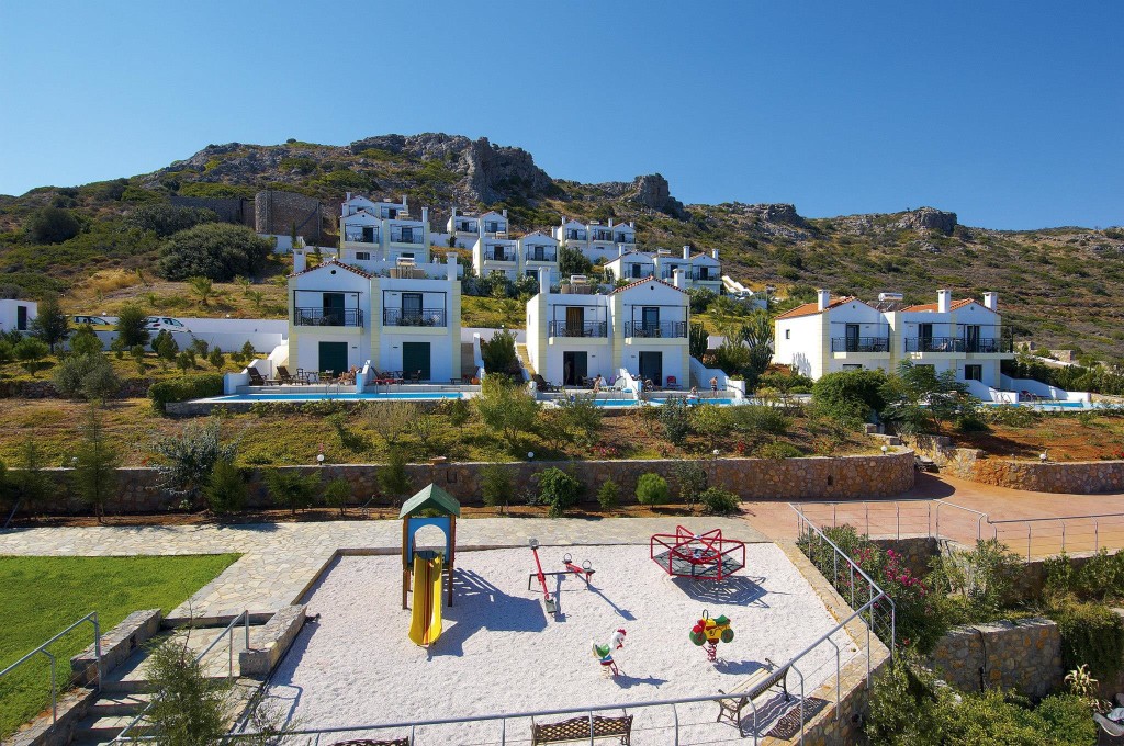 Queste ville/maisonettes di recente costruzione sono posizionate sul fianco di una collina, all’interno di un terreno di 16000 mq. Il vivace villaggio turistico di Hersonissos dista 1,5 km., la città di Heraklion 30 km.